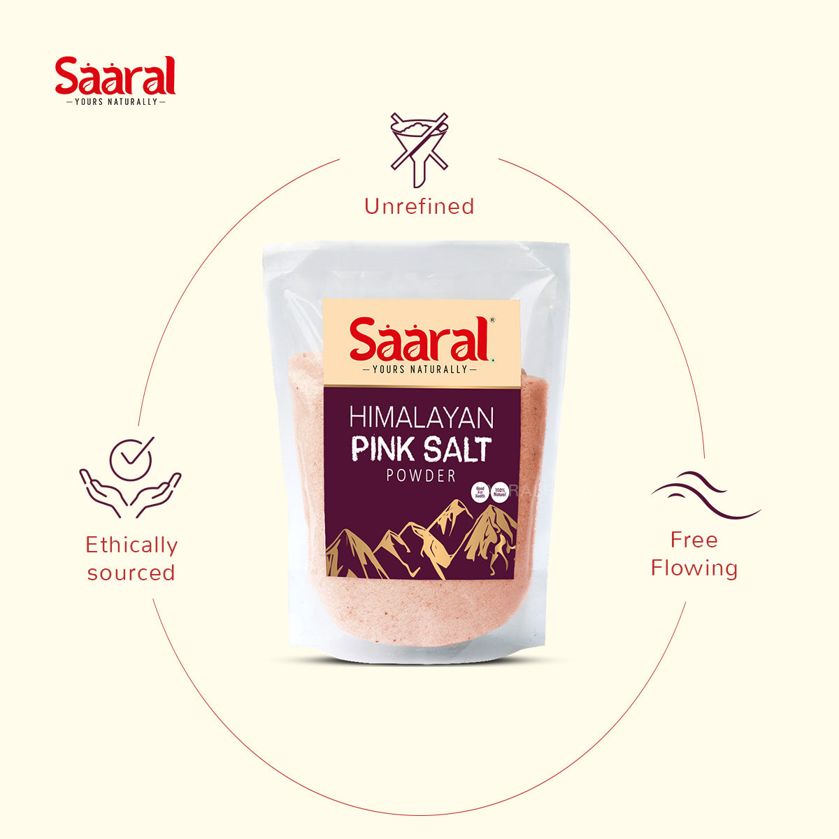 Saaral Himalayan Pink Salt Powder is a premium culinary seasoning made from pristine salt deposits, free from pollutants. Rich in essential minerals like iron, magnesium, and potassium, it provides not just flavor but also nutritional benefits. Its subtle, nuanced taste enhances any dish, from grilling to baking, and it's ideal for both professional chefs and home cooks. Enjoy the purity and convenience of this finely ground salt for a mindful approach to seasoning.
