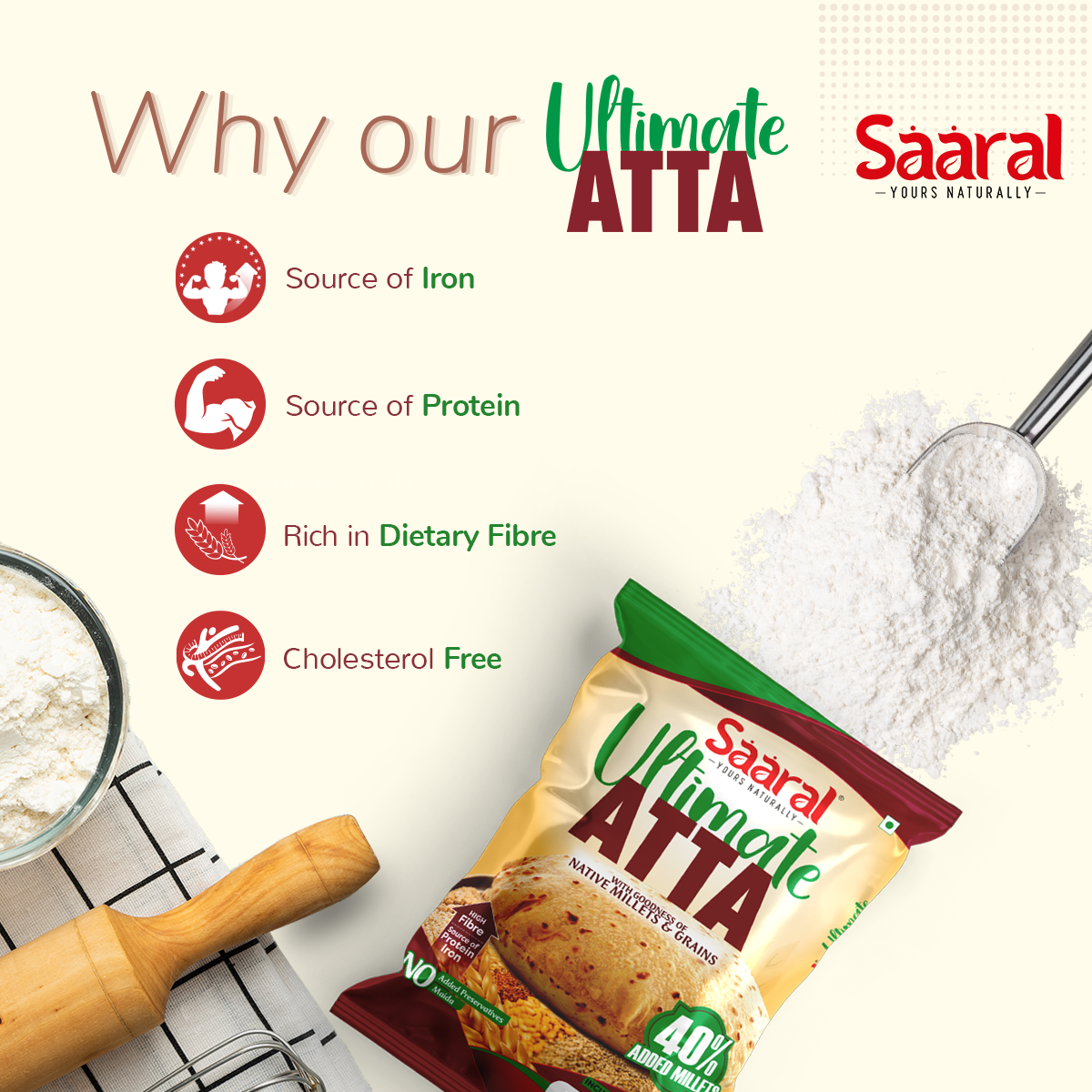 Saaral Ultimate Atta / Multi Millet Atta | Diabetic Friendly | Low GI Wheat Flour with 40% Millets | High Protein & Fibre