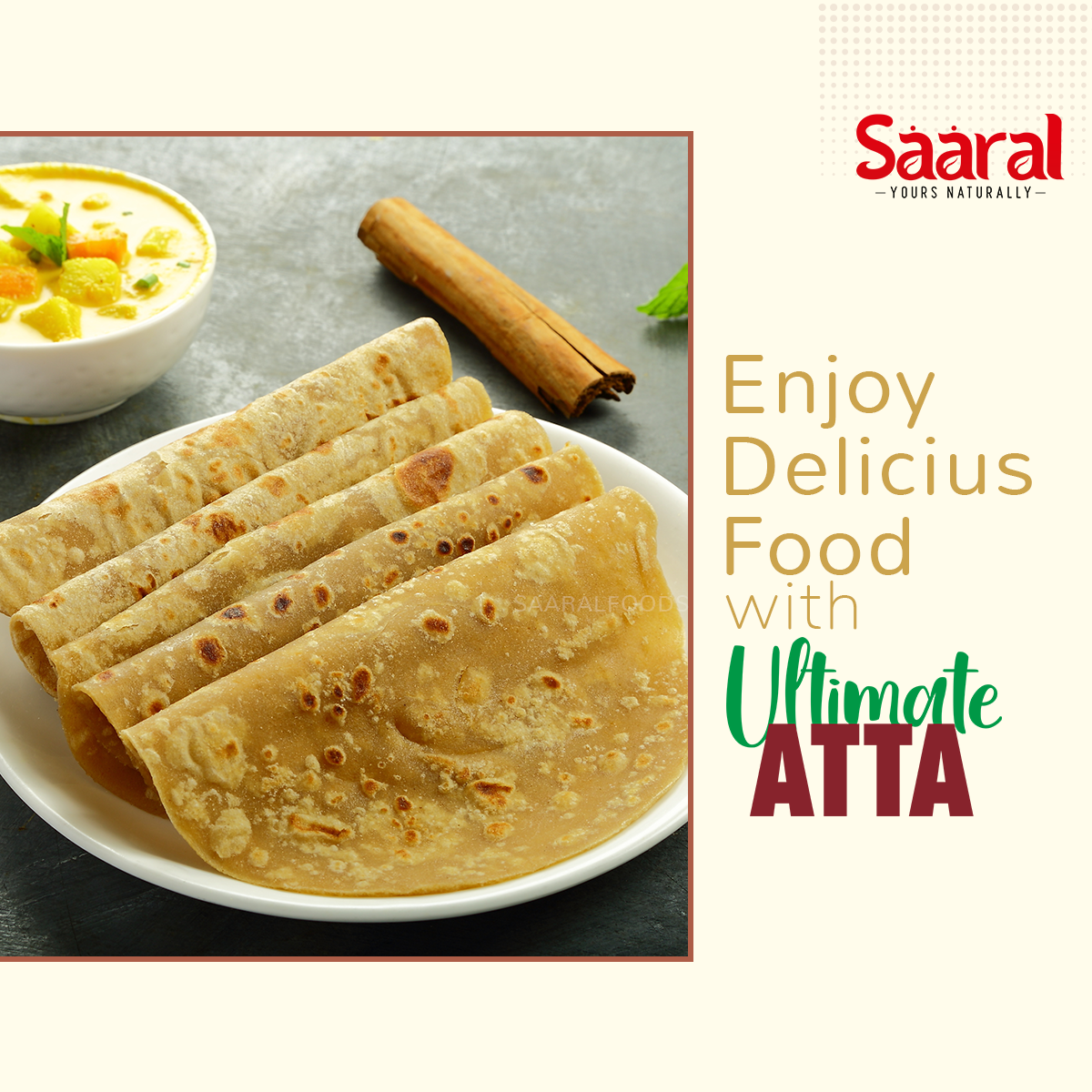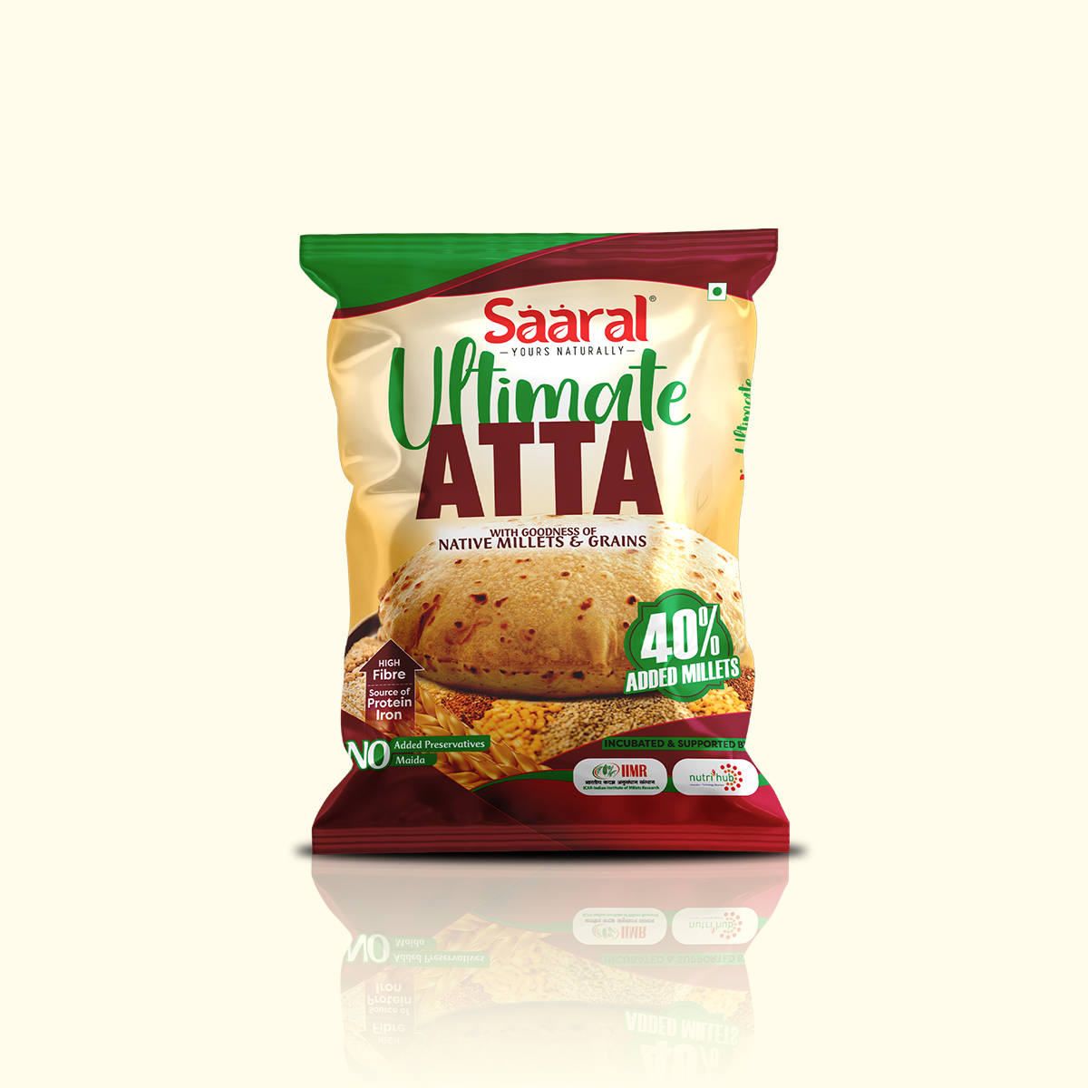 Saaral Ultimate Atta is a nutritious blend of 60% whole wheat and 40% native millets, providing a healthier and tastier alternative to regular flour. High in fiber content aids in digestion, helps in managing Blood sugar level, Free from maida and Preservatives. It’s perfect for making soft, delicious, and healthy rotis. Sourced locally from India’s finest fields, this atta combines the goodness of whole grains and millets for a wholesome meal. Enjoy fresh, homemade rotis that are not only tasty but also nutrient dense.